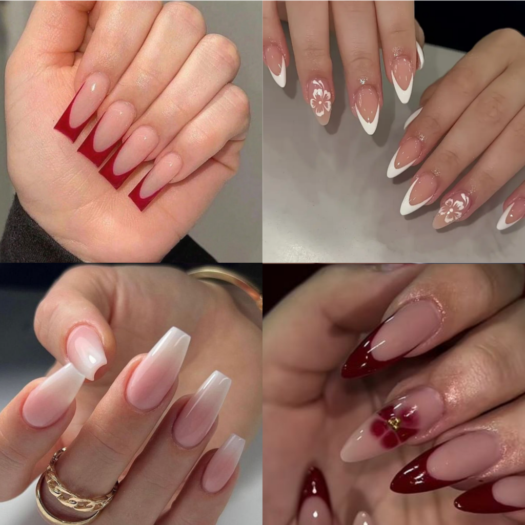 Pose comprenant au maximum deux décorations par ongle, telles que du chrome, une petite fleur en 3D, un bijou d’ongle ou tout type de dégradé.