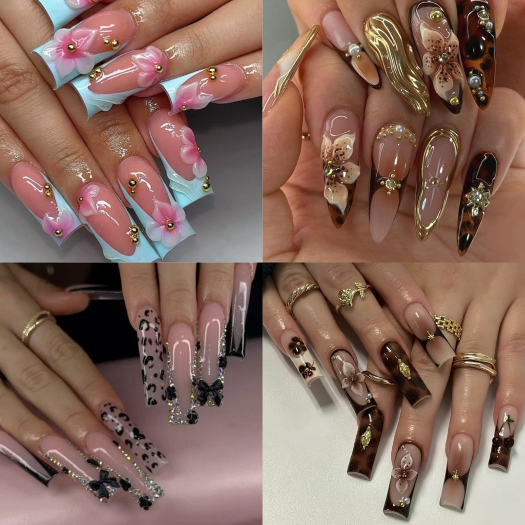 Pose avec décorations élaborées, pouvant inclure des strass, des créations en 3D et toute fantaisie selon vos envies.