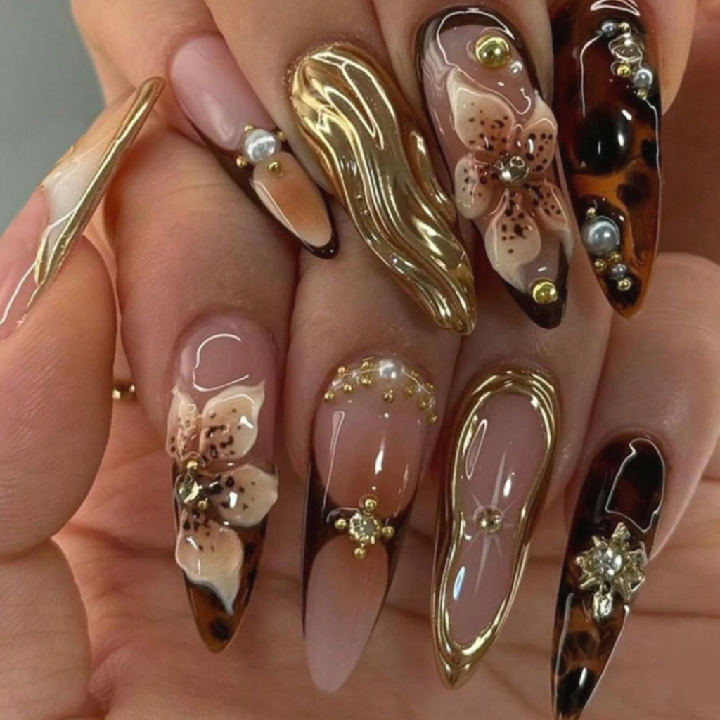 Pose avec décorations élaborées, pouvant inclure des strass, des créations en 3D et toute fantaisie selon vos envies.