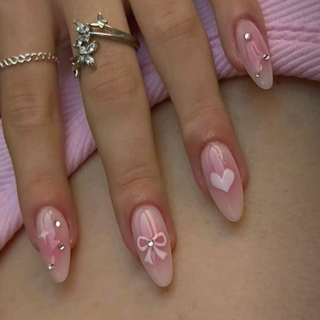 Pose comprenant au maximum deux décorations par ongle, telles que du chrome, une petite fleur en 3D, un bijou d’ongle ou tout type de dégradé.
